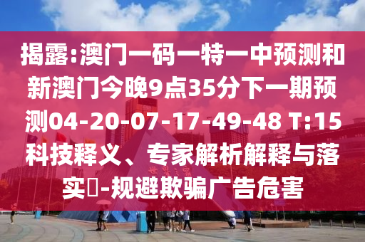 關于揭露澳門一碼一特一中預測和新澳門今晚9點35分下一期預測等相關內容的科技釋義、專家解析及如何規避欺騙廣告危害