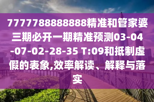 7777788888888精準和管家婆三期必開一期精準預測03-04-07-02-28-35 T:09和抵制虛假的表象,效率解讀、解釋與落實