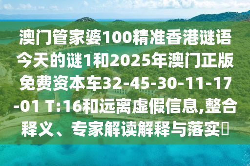 澳門管家婆100精準香港謎語今天的謎1和2025年澳門正版免費資本車32-45-30-11-17-01 T:16:整合釋義、專家解讀解釋與落實?