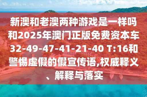 新澳和老澳兩種游戲是一樣嗎和2025年澳門正版免費資本車32-49-47-41-21-40 T:16和警惕虛假的假宣傳語,權威釋義、解釋與落實