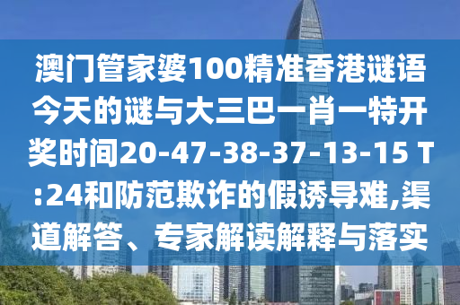澳門管家婆100精準香港謎語今天的謎與大三巴一肖一特開獎時間20-47-38-37-13-15 T:24和防范欺詐的假誘導難,渠道解答、專家解讀解釋與落實