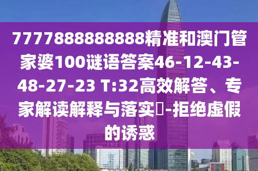 關于關鍵詞“7777888888888精準和澳門管家婆100謎語答案46-12-43-48-27-23 T:32”,我們需要從全面釋義、專家解讀與落實、警惕虛假宣傳等方面來解析描述,以下是對這些關鍵詞的詳細解讀。