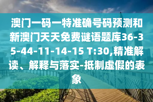 澳門一碼一特準確號碼預測和新澳門天天免費謎語題庫36-35-44-11-14-15 T:30,精準解讀、解釋與落實-抵制虛假的表象