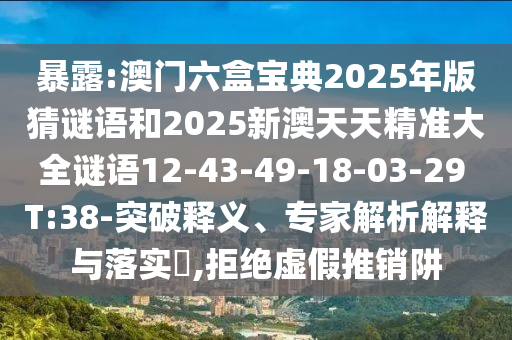 暴露:澳門六盒寶典2025年版猜謎語和2025新澳天天精準大全謎語12-43-49-18-03-29 T:38-突破釋義、專家解析解釋與落實?,拒絕虛假推銷阱