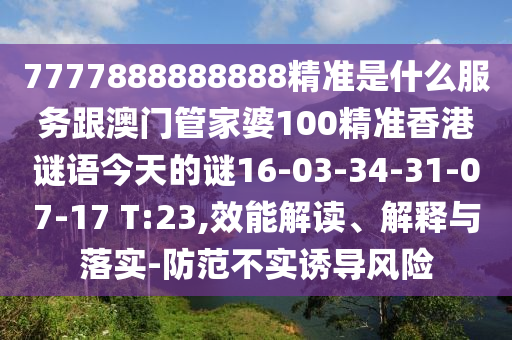 7777888888888精準是什么服務跟澳門管家婆100精準香港謎語今天的謎16-03-34-31-07-17 T:23,效能解讀、解釋與落實-防范不實誘導風險