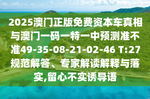 2025澳門正版免費資本車真相與澳門一碼一特一中預測準不準49-35-08-21-02-46 T:27的規范解答、專家解讀解釋與落實