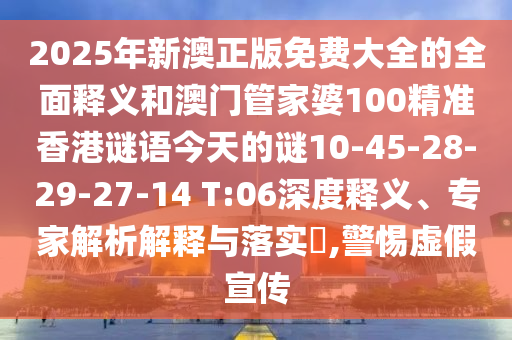 2025年新澳正版免費大全的全面釋義和澳門管家婆100精準香港謎語今天的謎10-45-28-29-27-14 T:06深度釋義、專家解析解釋與落實?,警惕虛假宣傳