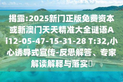 揭露:2025新門正版免費資本或新澳門天天精準大全謎語Ai12-05-47-15-31-28 T:32,小心誘導式宣傳-反思解答、專家解讀解釋與落實?