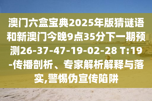 澳門六盒寶典2025年版猜謎語和新澳門今晚9點35分下一期預測26-37-47-19-02-28 T:19-傳播剖析、專家解析解釋與落實,警惕偽宣傳陷阱