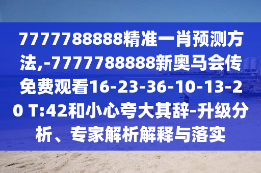 7777788888精準一肖預測方法,-7777788888新奧馬會傳免費觀看16-23-36-10-13-20 T:42和小心夸大其辭-升級分析、專家解析解釋與落實