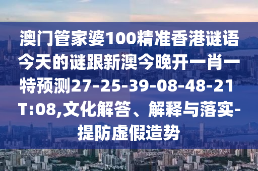 澳門管家婆100精準香港謎語今天的謎跟新澳今晚開一肖一特預測27-25-39-08-48-21 T:08,文化解答、解釋與落實-提防虛假造勢