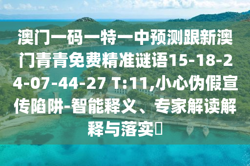 澳門一碼一特一中預測跟新澳門青青免費精準謎語15-18-24-07-44-27 T:11,小心偽假宣傳陷阱-智能釋義、專家解讀解釋與落實?