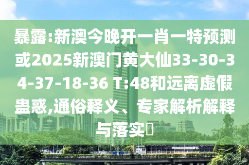 暴露:新澳今晚開一肖一特預測或2025新澳門黃大仙33-30-34-37-18-36 T:48和遠離虛假蠱惑,通俗釋義、專家解析解釋與落實?