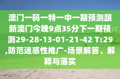 澳門一碼一特一中一期預測跟新澳門今晚9點35分下一期預測29-28-13-01-21-42 T:29,防范迷惑性推廣-場景解答、解釋與落實