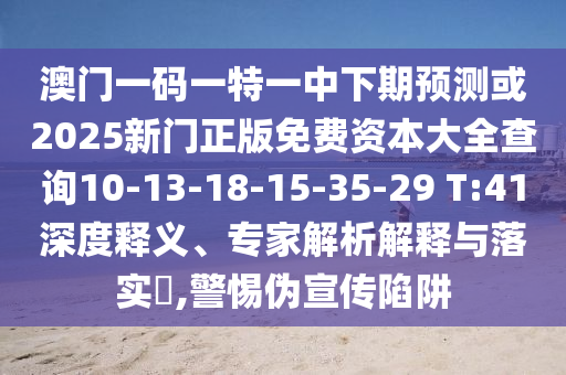 澳門一碼一特一中下期預測或2025新門正版免費資本大全查詢10-13-18-15-35-29 T:41深度釋義、專家解析解釋與落實?,警惕偽宣傳陷阱