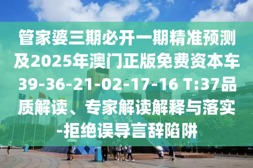 管家婆三期必開一期精準預測及2025年澳門正版免費資本車39-36-21-02-17-16 T:37品質解讀、專家解讀解釋與落實-拒絕誤導言辭陷阱