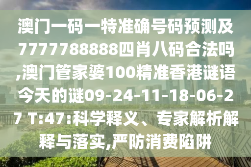 澳門一碼一特準確號碼預測及7777788888四肖八碼合法嗎,澳門管家婆100精準香港謎語今天的謎09-24-11-18-06-27 T:47:科學釋義、專家解析解釋與落實,嚴防消費陷阱