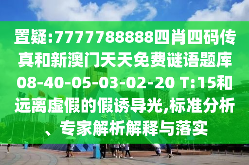 置疑:7777788888四肖四碼傳真和新澳門天天免費謎語題庫08-40-05-03-02-20 T:15和遠離虛假的假誘導光,標準分析、專家解析解釋與落實