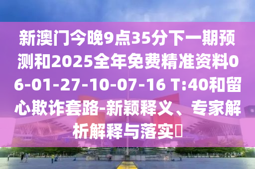 新澳門今晚9點35分下一期預測和2025全年免費精準資料06-01-27-10-07-16 T:40和留心欺詐套路-新穎釋義、專家解析解釋與落實?