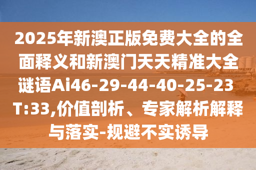 2025年新澳正版免費大全的全面釋義和新澳門天天精準大全謎語Ai46-29-44-40-25-23 T:33,價值剖析、專家解析解釋與落實-規避不實誘導