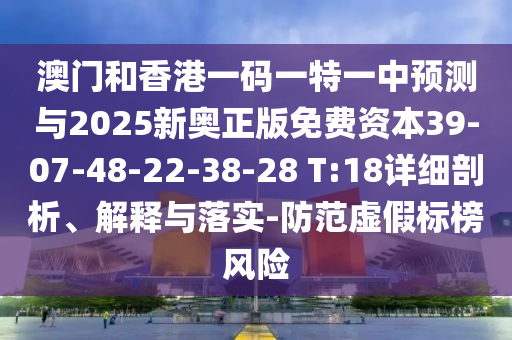 澳門和香港一碼一特一中預測與2025新奧正版免費資本39-07-48-22-38-28 T:18詳細剖析、解釋與落實-防范虛假標榜風險