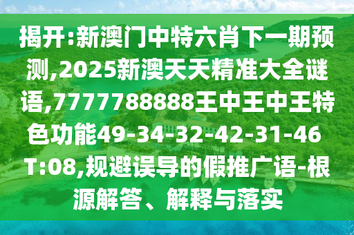 揭開:新澳門中特六肖下一期預測,2025新澳天天精準大全謎語,7777788888王中王中王特色功能49-34-32-42-31-46 T:08,規避誤導的假推廣語-根源解答、解釋與落實