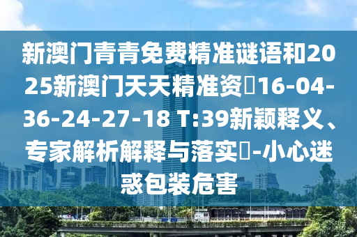 新澳門青青免費精準謎語和2025新澳門天天精準資枓16-04-36-24-27-18 T:39新穎釋義、專家解析解釋與落實?-小心迷惑包裝危害
