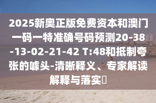 2025新奧正版免費資本和澳門一碼一特準確號碼預測20-38-13-02-21-42 T:48和抵制夸張的噱頭-清晰釋義、專家解讀解釋與落實?