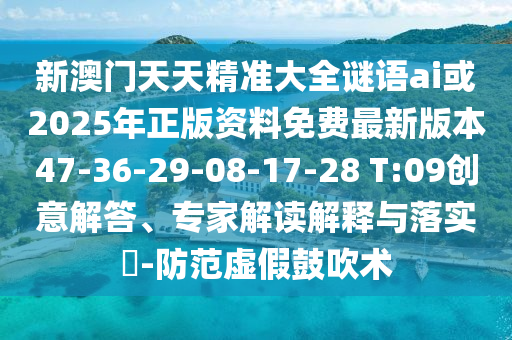 新澳門天天精準大全謎語ai或2025年正版資料免費最新版本47-36-29-08-17-28 T:09創意解答、專家解讀解釋與落實?-防范虛假鼓吹術