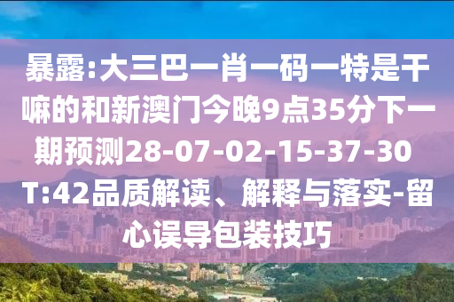 暴露:大三巴一肖一碼一特是干嘛的和新澳門今晚9點35分下一期預測28-07-02-15-37-30 T:42品質解讀、解釋與落實-留心誤導包裝技巧