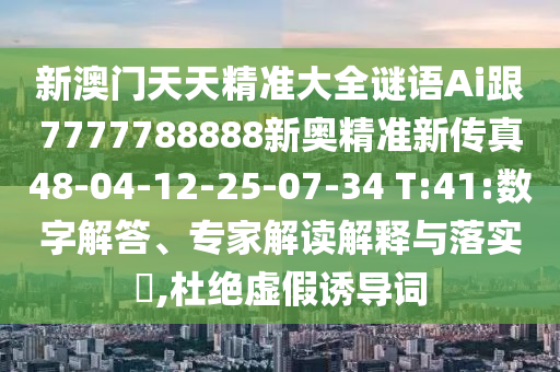 新澳門天天精準大全謎語Ai跟7777788888新奧精準新傳真48-04-12-25-07-34 T:41:數字解答、專家解讀解釋與落實?,杜絕虛假誘導詞
