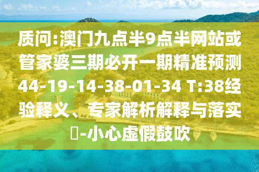 質問:澳門九點半9點半網站或管家婆三期必開一期精準預測44-19-14-38-01-34 T:38經驗釋義、專家解析解釋與落實?-小心虛假鼓吹