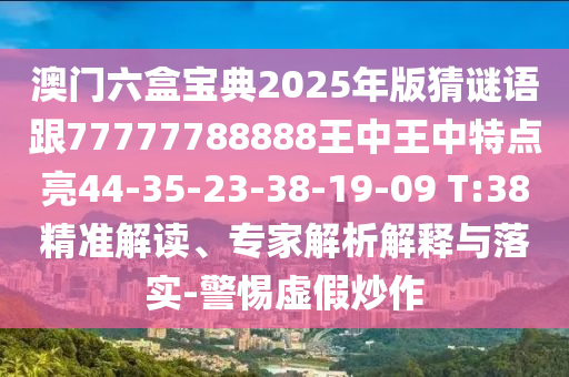 澳門六盒寶典2025年版猜謎語跟77777788888王中王中特點亮44-35-23-38-19-09 T:38精準解讀、專家解析解釋與落實-警惕虛假炒作