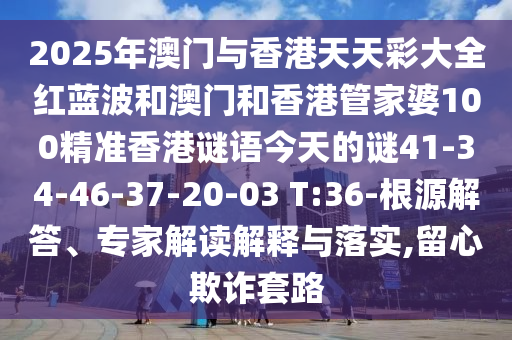 2025年澳門與香港天天彩大全紅藍波和澳門和香港管家婆100精準香港謎語今天的謎41-34-46-37-20-03 T:36-根源解答、專家解讀解釋與落實,留心欺詐套路