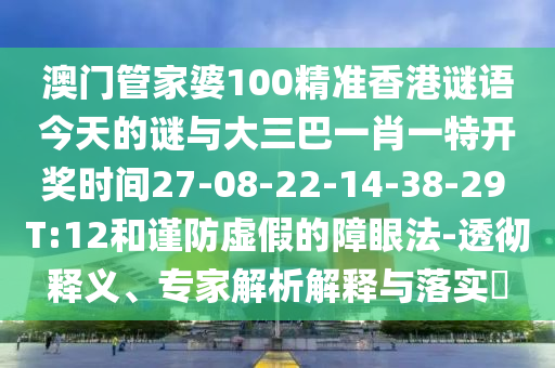 澳門管家婆100精準香港謎語今天的謎與大三巴一肖一特開獎時間27-08-22-14-38-29 T:12和謹防虛假的障眼法-透徹釋義、專家解析解釋與落實?
