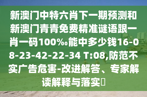 新澳門中特六肖下一期預測和新澳門青青免費精準謎語跟一肖一碼100‰能中多少錢16-08-23-42-22-34 T:08,防范不實廣告危害-改進解答、專家解讀解釋與落實?