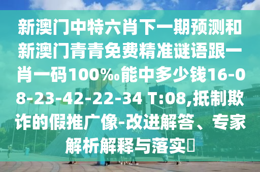 新澳門中特六肖下一期預測和新澳門青青免費精準謎語跟一肖一碼100‰能中多少錢16-08-23-42-22-34 T:08,抵制欺詐的假推廣像-改進解答、專家解析解釋與落實?