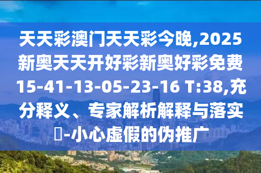 天天彩澳門天天彩今晚,2025新奧天天開好彩新奧好彩免費15-41-13-05-23-16 T:38,充分釋義、專家解析解釋與落實?-小心虛假的偽推廣
