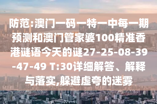 關于防范澳門一碼一特一中每一期預測和澳門管家婆100精準香港謎語今天的謎27-25-08-39-47-49 T:30等相關內容,以及躲避虛夸的迷霧的詳細解答、解釋與落實