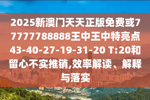 2025新澳門天天正版免費或77777788888王中王中特亮點43-40-27-19-31-20 T:20的效率解讀、解釋與落實