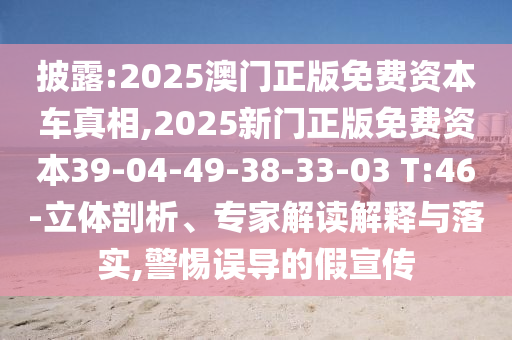 披露:2025澳門正版免費資本車真相,2025新門正版免費資本39-04-49-38-33-03 T:46-立體剖析、專家解讀解釋與落實,警惕誤導的假宣傳