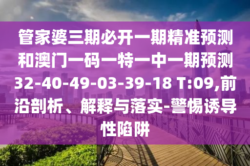 管家婆三期必開一期精準預測和澳門一碼一特一中一期預測32-40-49-03-39-18 T:09,前沿剖析、解釋與落實-警惕誘導性陷阱