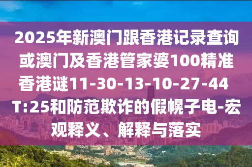 2025年新澳門跟香港記錄查詢或澳門及香港管家婆100精準香港謎11-30-13-10-27-44 T:25和防范欺詐的假幌子電-宏觀釋義、解釋與落實