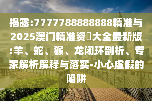 揭露:7777788888888精準與2025澳門精準資枓大全最新版:羊、蛇、猴、龍閉環剖析、專家解析解釋與落實-小心虛假的陷阱