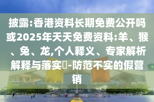香港資料長期免費公開嗎或2025年天天免費資料:羊、猴、兔、龍,以及防范不實的假營銷的個人釋義、專家解析解釋與落實