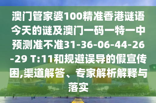 澳門管家婆100精準香港謎語今天的謎及澳門一碼一特一中預測準不準31-36-06-44-26-29 T:11和規避誤導的假宣傳困,渠道解答、專家解析解釋與落實