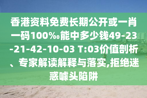 香港資料免費長期公開或一肖一碼100‰能中多少錢49-23-21-42-10-03 T:03的價值剖析、專家解讀解釋與落實