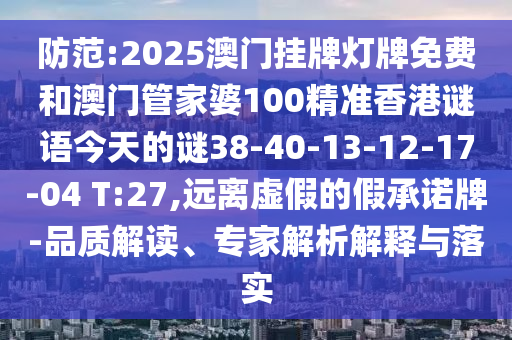 防范:2025澳門掛牌燈牌免費和澳門管家婆100精準香港謎語今天的謎38-40-13-12-17-04 T:27,遠離虛假的假承諾牌-品質解讀、專家解析解釋與落實