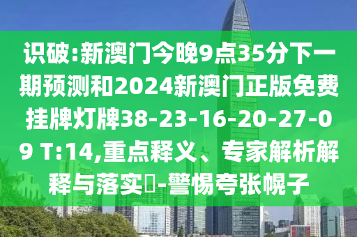 識破:新澳門今晚9點35分下一期預測和2024新澳門正版免費掛牌燈牌38-23-16-20-27-09 T:14,重點釋義、專家解析解釋與落實?-警惕夸張幌子