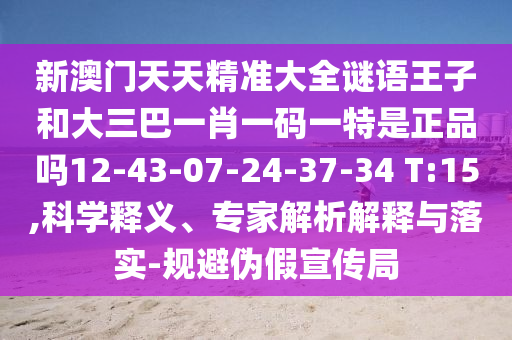 新澳門天天精準大全謎語王子和大三巴一肖一碼一特是正品嗎12-43-07-24-37-34 T:15的科學釋義、專家解析解釋與落實